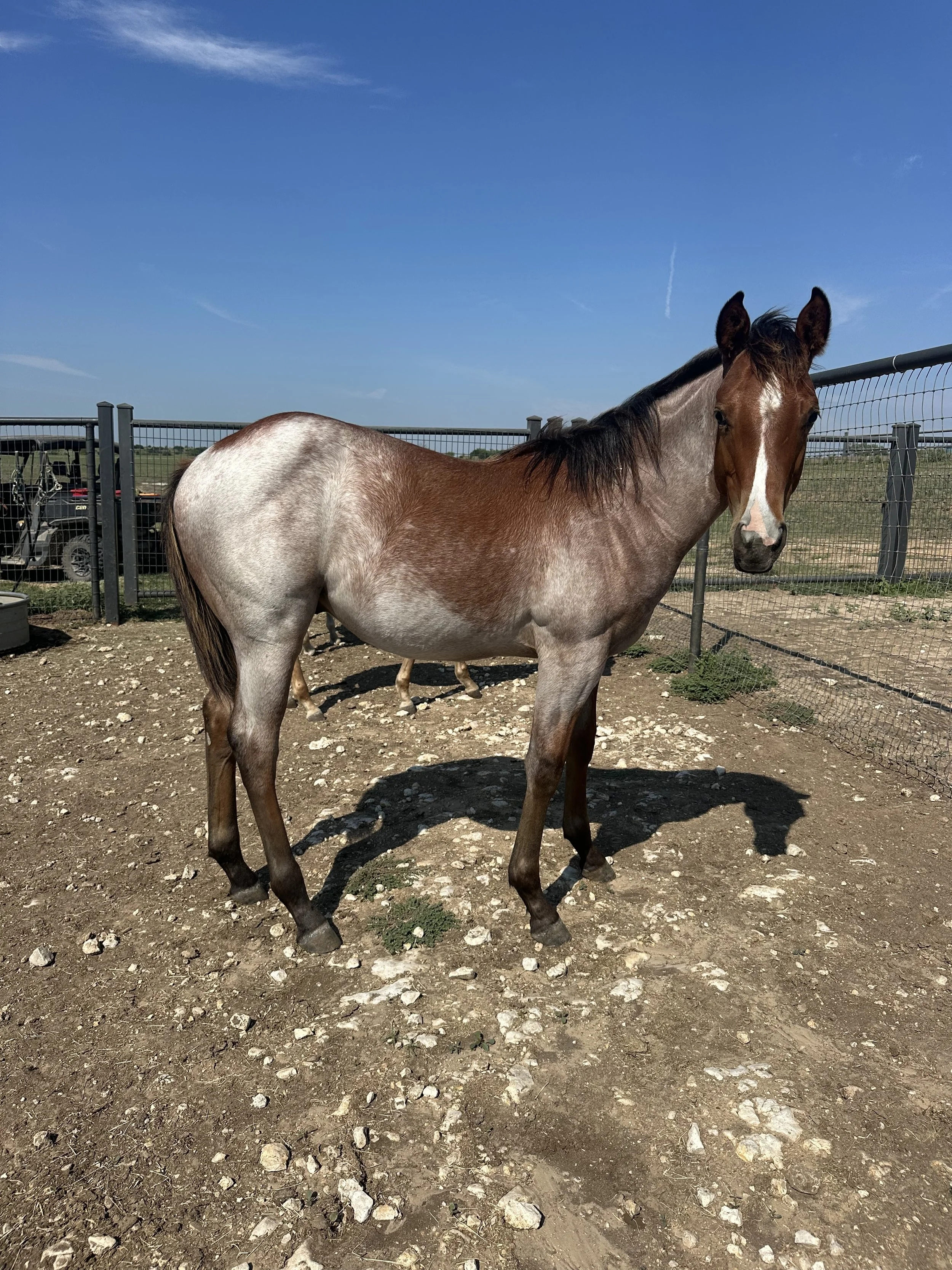 2023 bay roan mare by Furyofthewind